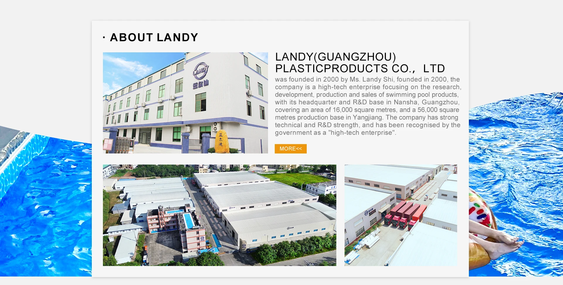 With the standard of "quality is the core, customer satisfaction is the purpose", Landy tries its best to provide high-quality products and services to our valued customers. Landy owns “LANDY”,”POOL-LINER”, and “TC-COVER” three independents brands, and its products have passed CE, AWTA, ASTM, SGS, CQC, CNAS, IQNET, and other professional certifications.
